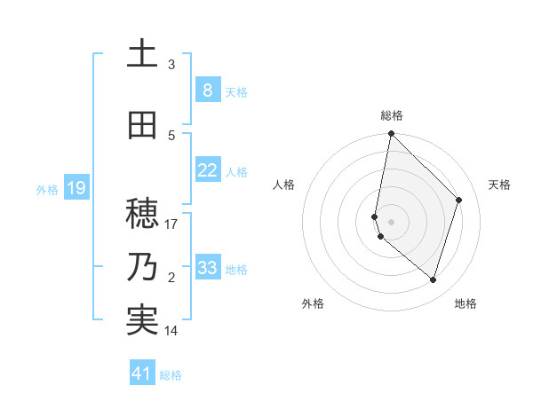 土田 穂乃実さんの総格は41画の5点!