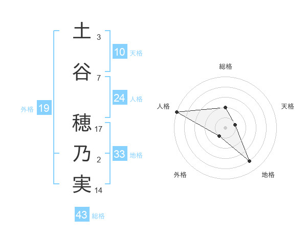 土谷 穂乃実さんを姓名の画数から五運を鑑定