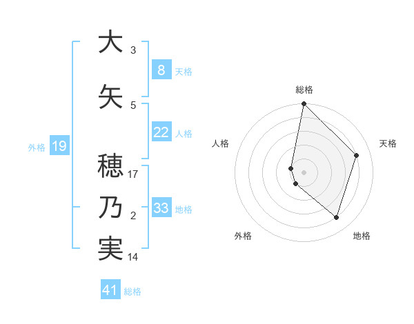 大矢 穂乃実さんを姓名の画数から五運を鑑定