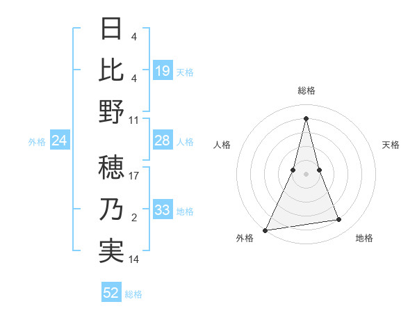 日比野 穂乃実さんを姓名の画数から五運を鑑定