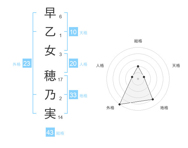 早乙女 穂乃実さんを姓名の画数から五運を鑑定