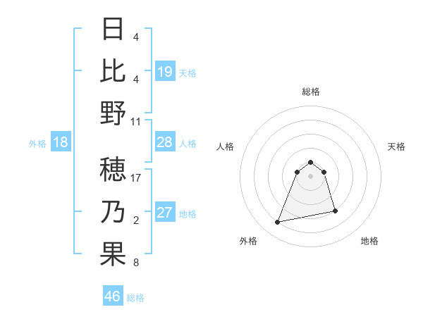日比野 穂乃果さんを姓名の画数から五運を鑑定