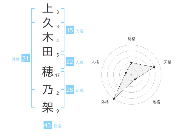 上久木田 穂乃架さんを姓名の画数から五運を鑑定