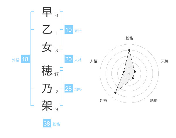 早乙女 穂乃架さんを姓名の画数から五運を鑑定