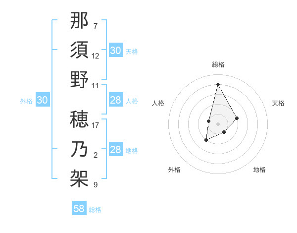 那須野 穂乃架さんを姓名の画数から五運を鑑定