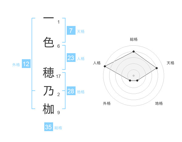 一色 穂乃枷さんを姓名の画数から五運を鑑定