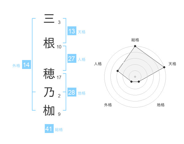 三根 穂乃枷さんを姓名の画数から五運を鑑定
