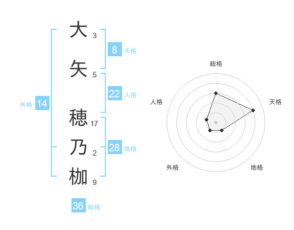 大矢 穂乃枷さんの総格は36画の3点!