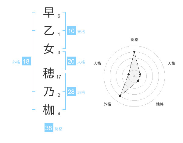 早乙女 穂乃枷さんを姓名の画数から五運を鑑定