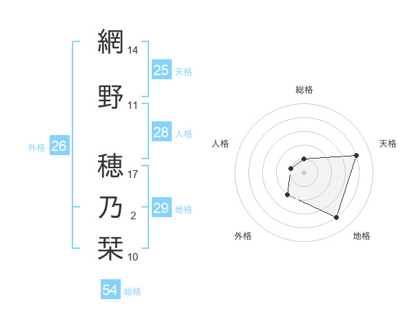 網野 穂乃栞さんの総格は54画の1点!