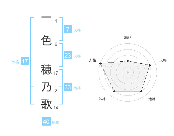 一色 穂乃歌さんを姓名の画数から五運を鑑定