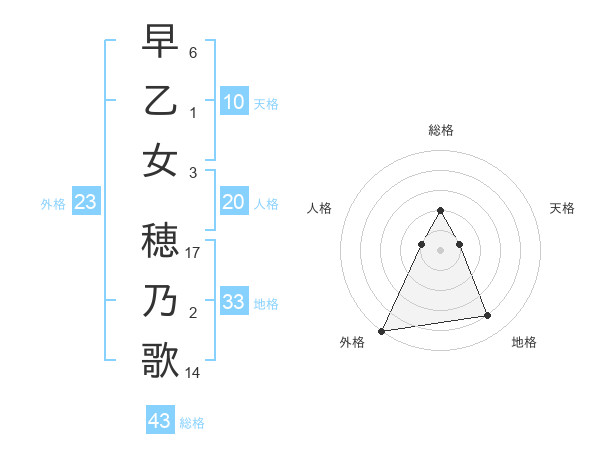 早乙女 穂乃歌さんを姓名の画数から五運を鑑定