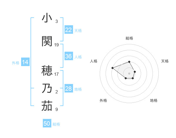 小関 穂乃茄さんを姓名の画数から五運を鑑定