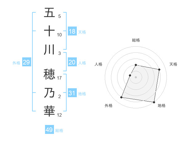 五十川 穂乃華さんを姓名の画数から五運を鑑定
