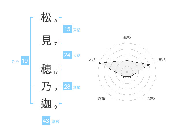 松見 穂乃迦さんを姓名の画数から五運を鑑定