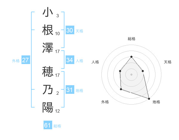 小根澤 穂乃陽さんを姓名の画数から五運を鑑定