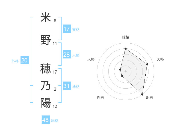 米野 穂乃陽さんを姓名の画数から五運を鑑定