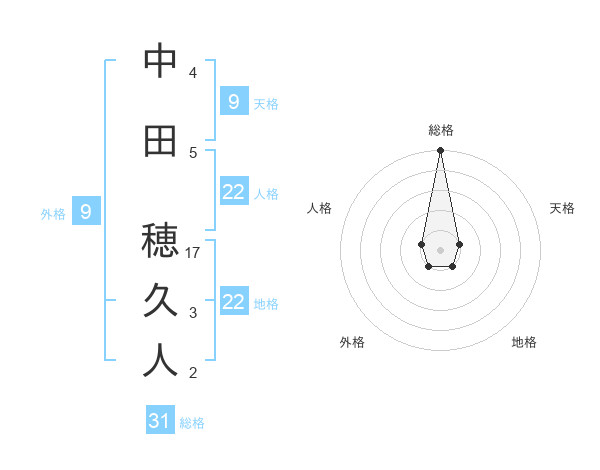 中田 穂久人さんを姓名の画数から五運を鑑定