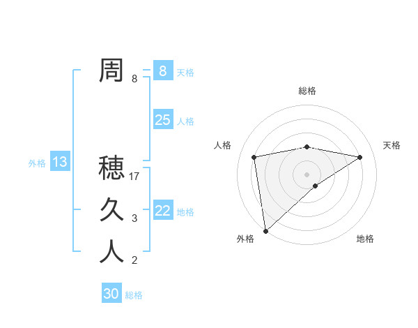 周 穂久人さんの外格は13画の5点!