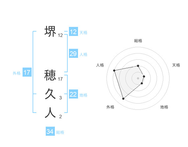 堺 穂久人さんの総格は34画の2点