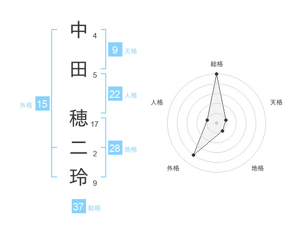中田 穂二玲さんの総格は37画の5点!