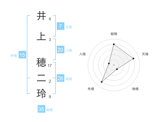 井上 穂二玲さんの総格は35画の4点!