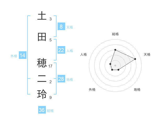 土田 穂二玲さんを姓名の画数から五運を鑑定