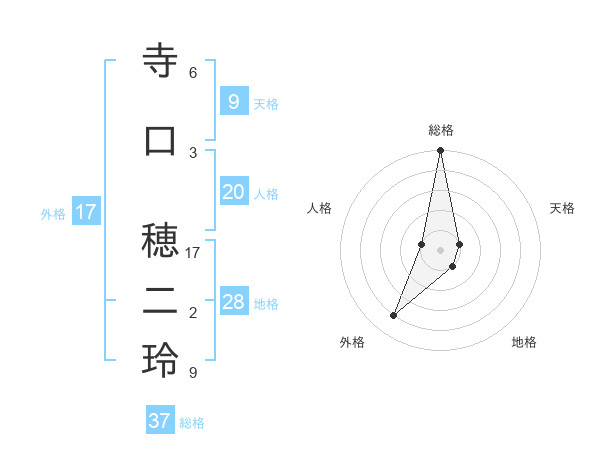 寺口 穂二玲さんを姓名の画数から五運を鑑定