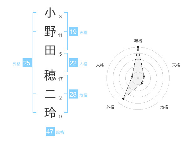 小野田 穂二玲さんを姓名の画数から五運を鑑定