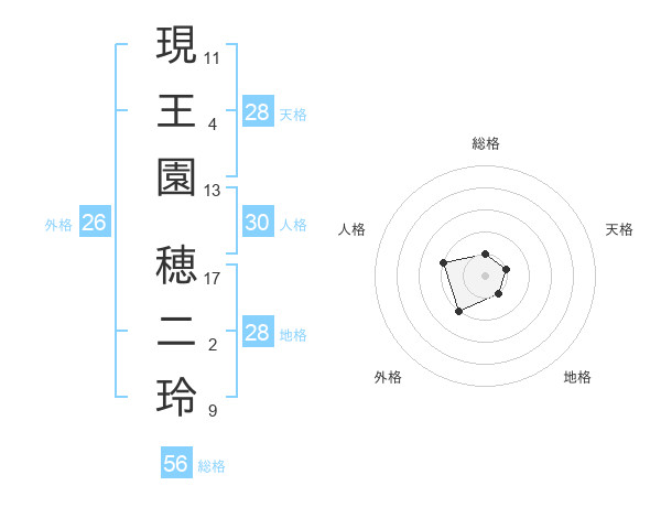 現王園 穂二玲さんを姓名の画数から五運を鑑定