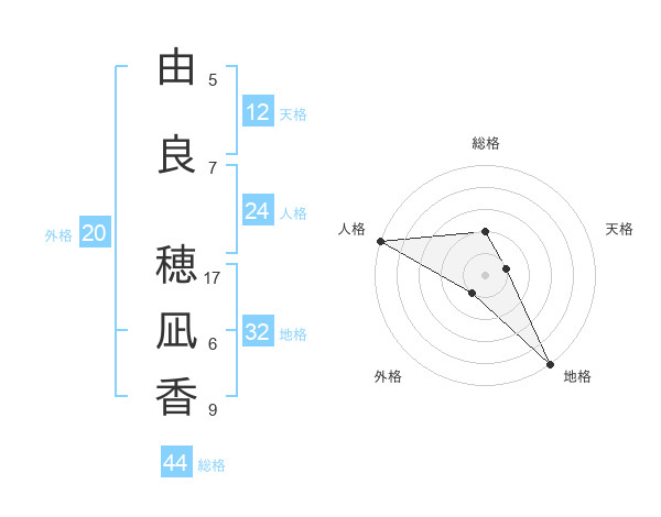 由良 穂凪香さんの総格は44画の2点