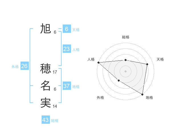 旭 穂名実さんの天格は6画の4点!