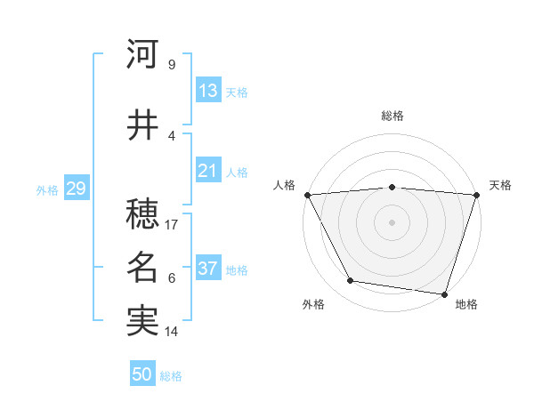 河井 穂名実さんを姓名の画数から五運を鑑定