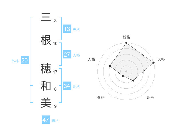 三根 穂和美さんの総格は47画の5点!