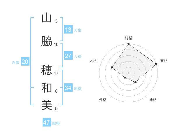 山脇 穂和美さんを姓名の画数から五運を鑑定