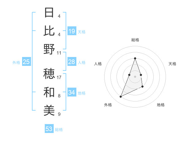 日比野 穂和美さんの総格は53画の3点!