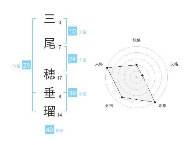 三尾 穂垂瑠さんを姓名の画数から五運を鑑定