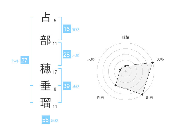 占部 穂垂瑠さんを姓名の画数から五運を鑑定