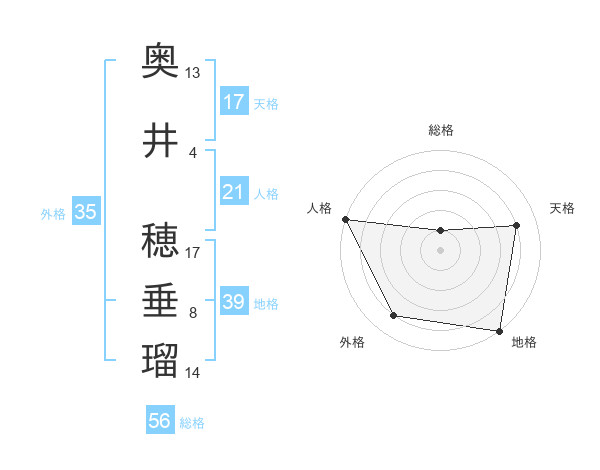 奥井 穂垂瑠さんを姓名の画数から五運を鑑定