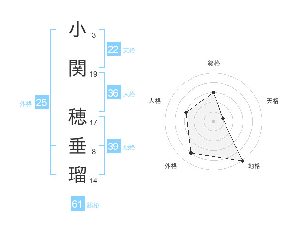 小関 穂垂瑠さんの総格は61画の3点!