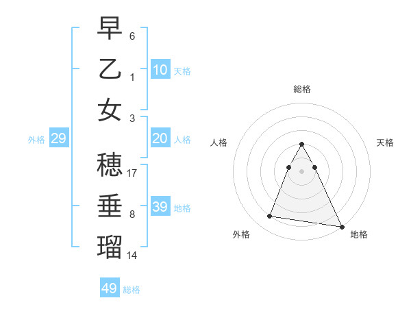 早乙女 穂垂瑠さんの総格は49画の2点!