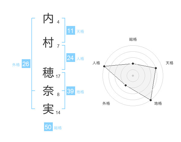 内村 穂奈実さんを姓名の画数から五運を鑑定