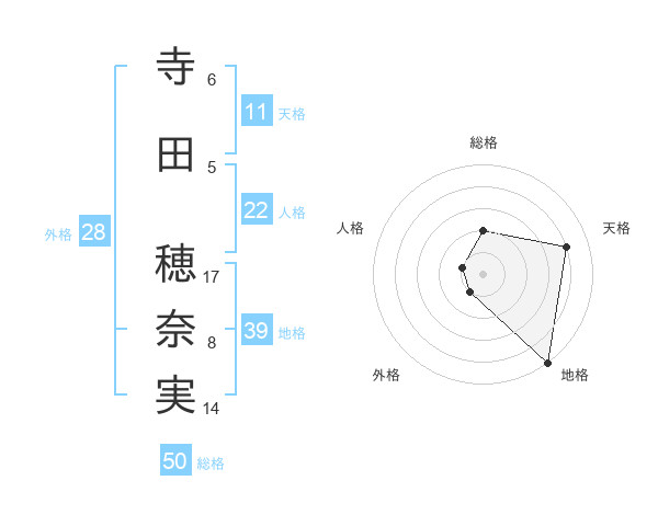 寺田 穂奈実さんの総格は50画の2点!