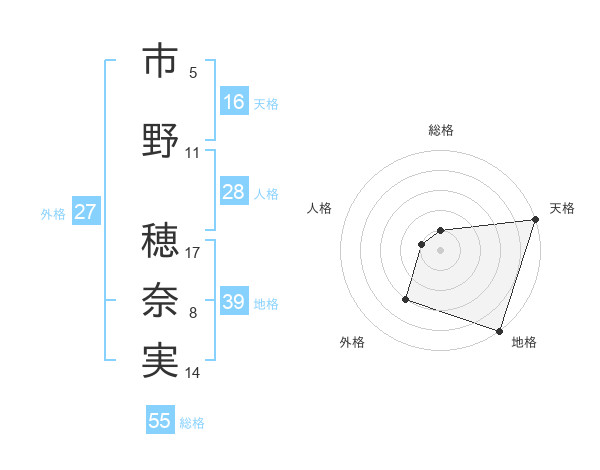 市野 穂奈実さんを姓名の画数から五運を鑑定