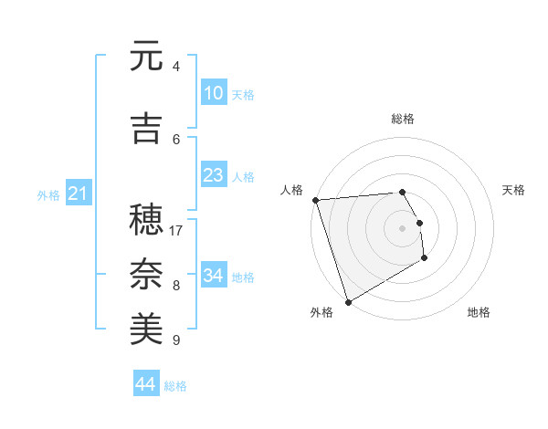 元吉 穂奈美さんの総格は44画の2点!