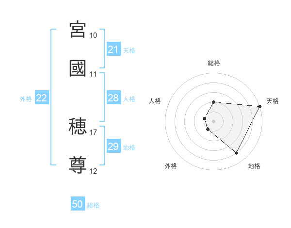 宮國 穂尊さんの総格は50画の2点!