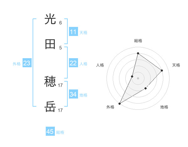 光田 穂岳さんを姓名の画数から五運を鑑定