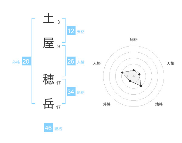 土屋 穂岳さんを姓名の画数から五運を鑑定