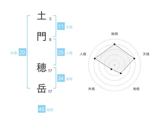 土門 穂岳さんを姓名の画数から五運を鑑定