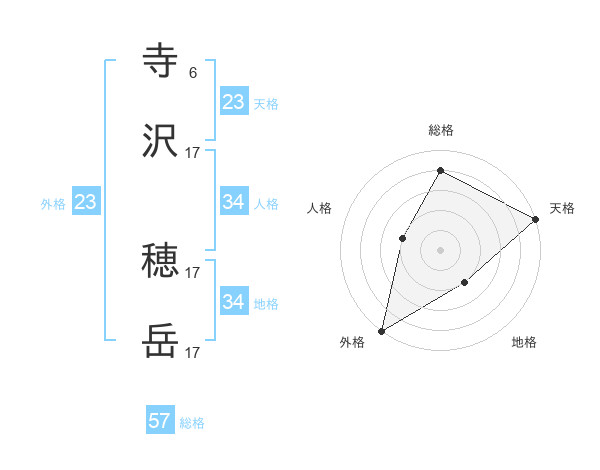 寺沢 穂岳さんを姓名の画数から五運を鑑定